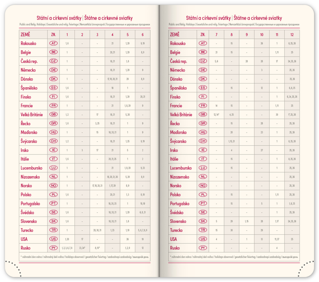 • svátky České a Slovenské republiky a mezinárodní svátky