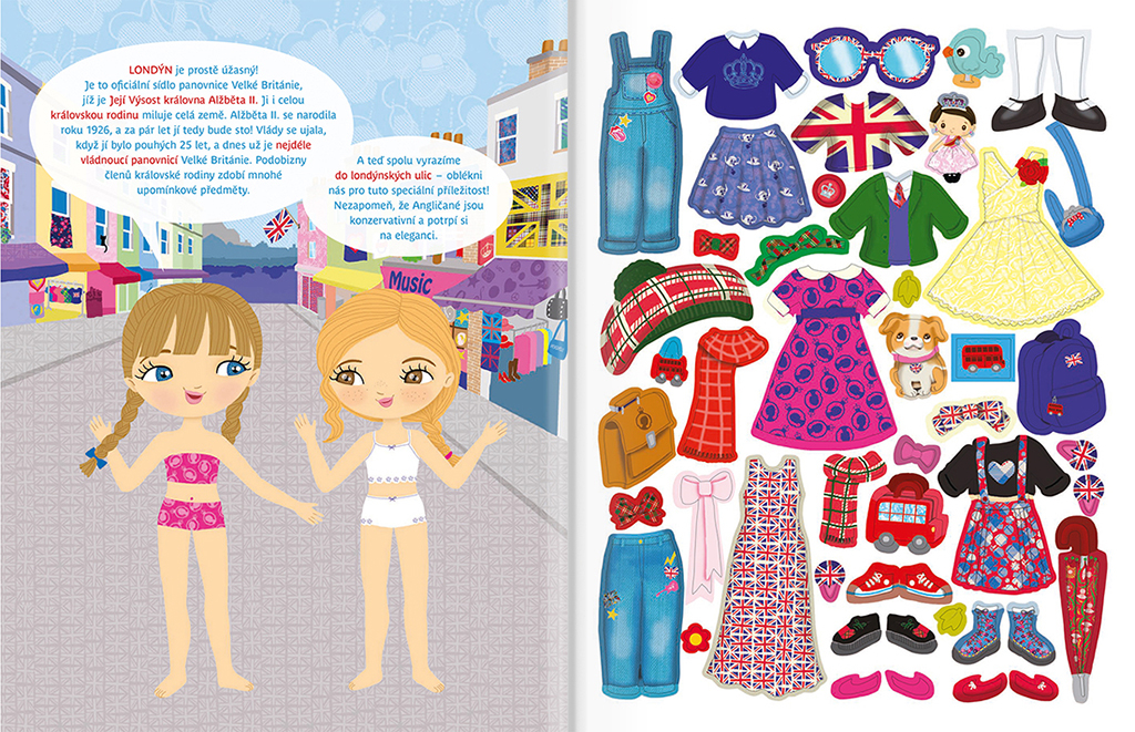Oblíbená série minimiki přichází s další novinkou v podobě zábavné samolepkové knížky, v níž budou děti společně s panenkou Kate a jejími kamarádkami Charlotte a Emily objevovat nejznámější kouty britské metropole Londýna. Známé londýnské scenerie mohou podle vlastní fantazie doplňovat spoustou krásných samolepek, které jsou opakovaně použitelné! V knížce najdou i mnoho zajímavých informací o tamních památkách, známých místech, ale také třeba o historii tohoto významného světového velkoměsta.