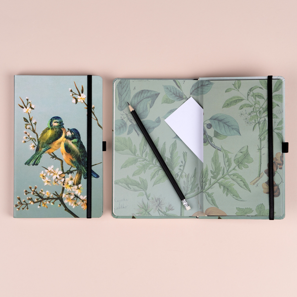Notes v pevných deskách z kolekce Kateřiny Winterové s retro ilustracemi ptáčků, s uzavíráním na gumičku, kapsou na drobnosti a poutkem na tužku. Vevnitř najdete 172 tečkovaných stran na žlutém papíře pro zapsání všech vašich nápadů.