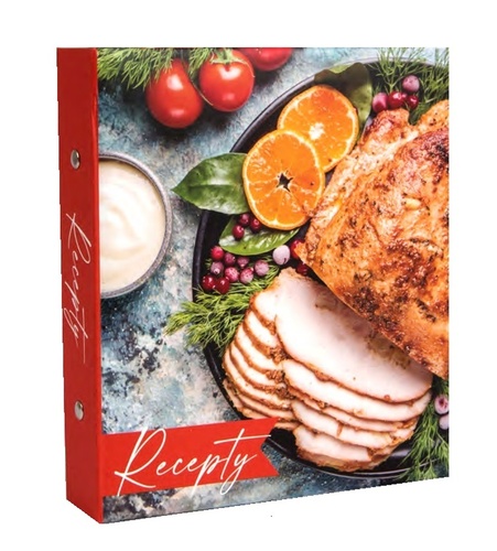 Kniha na recepty A5. Karis blok je linkovaný se záložkami na různé druhy receptů.