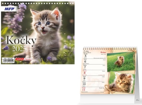 Stolní kalendář na rok 2025 mini s názvem Kočky. Kalendář je určený pro milovnice a milovníky koček. Vhodný pro zapisování důležitých poznámek, k organizování různých událostí každodenního života. Možnost dotisku firemního loga a textu na spodní stranu kalendáře.