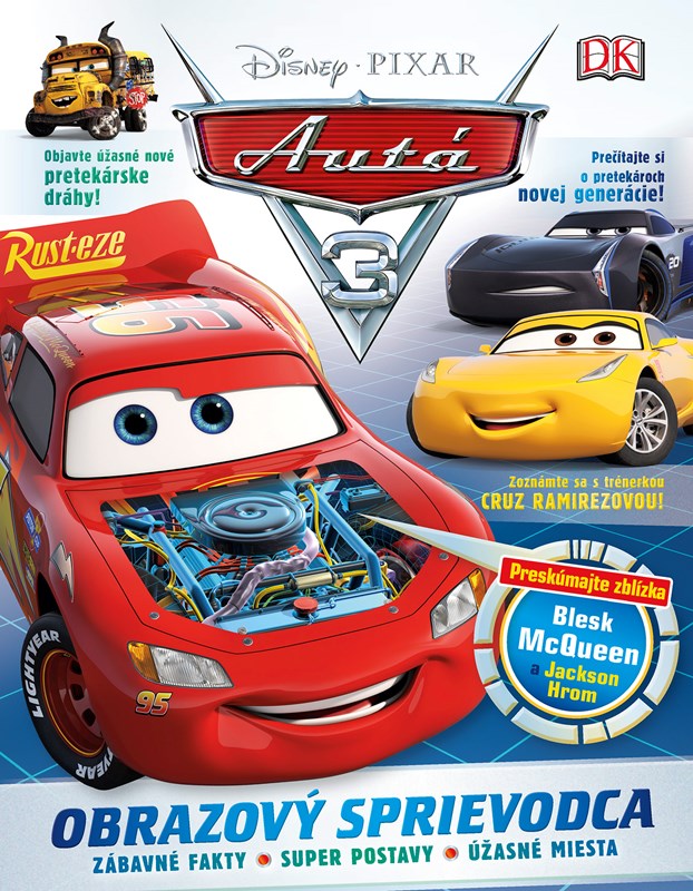 Pripojte sa k legendárnemu Bleskovi McQueenovi pri jeho ďalšom dobrodružstve! Zoznámte sa so všetkými dôležitými postavami, ktoré vystupujú v novom filme Autá 3. Prečítajte si o pretekároch novej generácie! Naučte sa tréningové triky a spoznajte fascinujúce fakty zo sveta automobilových súťaží.