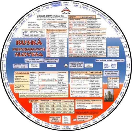 Jedinečné a gramaticky velmi obsáhlé oboustranné kolečko obsahuje celkem 80 nejpoužívanějších ruských nepravidelných sloves, jenž jsou rozdělena na dokonavá a nedokonavá.