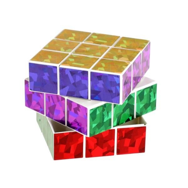 Hlavolam Rubikova kostka ve třpytivém designu. Pocvičíte své logické myšlení, představivost a zručnost. Velikost 6,5x6,5 cm. Vhodné od 3 let.