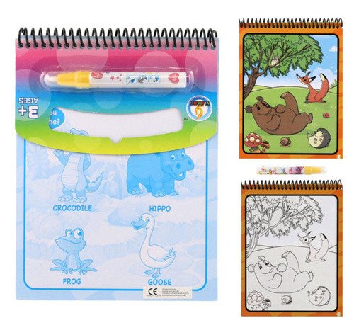 Čisté malování! Tyto "vodní" omalovánky obsahují čtyři znovupoužitelné obrázkové stránky a znovuplnitelné vodní pero. Použijte vodní pero, jehož tahy se zobrazí barvy na jednotlivých obrázcích, po uschnutí stránky obrázek opět zmizí.