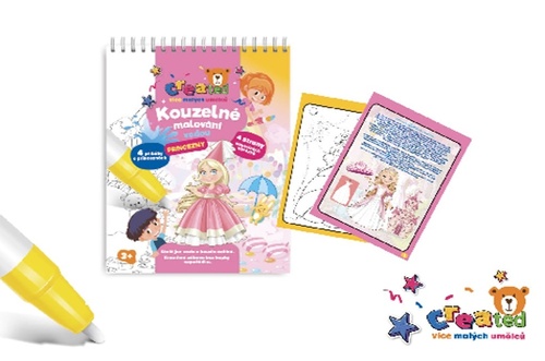 Stačí jen voda a kouzlo začíná! S tímto kouzelným blokem se děti přenesou do pohádkového světa princezen, krásných šatů a zámků. Naplňte přiloženou kouzelnou tužku vodou a sledujte, jak se obrázky samy vybarvují – bez kapky nepořádku. Po vyschnutí barvy zmizí a malování může začít znovu. Obsahuje 4 příběhy o princeznách, 4 kouzelné obrázky k vybarvování vodou a 1 kouzelnou vodní tužku.