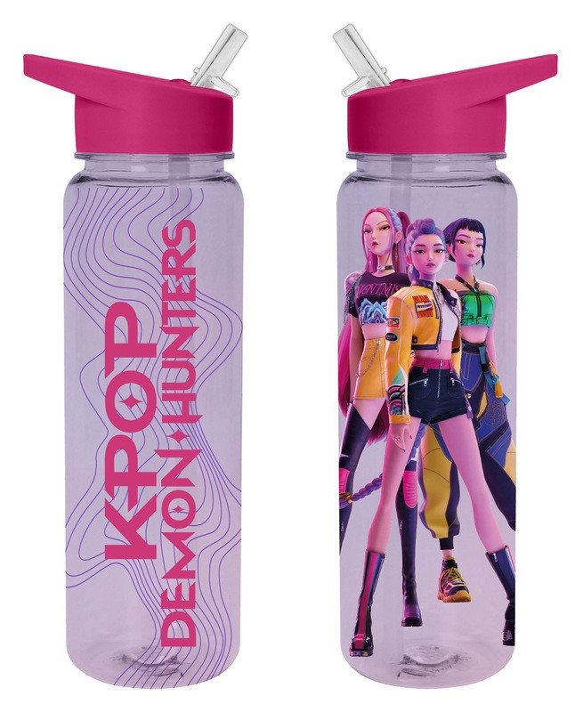 Plastová láhev K-pop Demon Hunters je navržena pro fanoušky stejnojmenné série a kombinuje praktickou funkčnost s výrazným designem. Láhev je vyrobena z průhledného plastu, který umožňuje snadnou kontrolu obsahu. Její tvar je válcovitý a ergonomický, což usnadňuje manipulaci a přenášení. Vrchní část láhve je opatřena výrazným růžovým víčkem s praktickým sklápěcím pítkem, které je vybaveno průhlednou brčkem, což umožňuje pohodlné a hygienické pití bez nutnosti celé láhve odšroubovat.