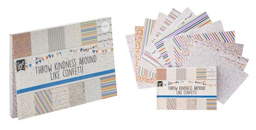 Kreativní blok obsahuje 2 x 12 listů ke kreativnímu tvoření (12 listů pozlaceno). Motivem jsou konfety.