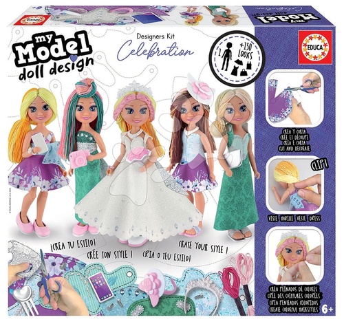 Kreativní tvoření My Model Doll Design Celebration od španělského výrobce Educa potěší všechny děti a zejména holčičky od 6 let. Kreativní sada obsahuje vše potřebné pro výrobu popstar panenky v nádherných šatech – děti najdou v balení 1 panenku a 150 doplňků, se kterými vyzdobí panenku. K dispozici budou mít bavlnu na vlásky, látku s předefinovaným vzorem na vystřihování, klip na šaty a další designové doplňky. Panenka má pohyblivé končetiny, takže děti získají ještě realističtější zážitek při hře na módní návrhářky, inspirovat se mohou obrázkem 5 různých modelů.
