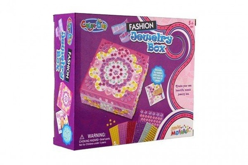 Kreativní šperkovnice, kterou si můžete sami vyzdobit mozaikou pomocí přiložených třpytivých dílků. Jednotlivé dílky se nalepí na políčka s vyobrazenými čísly. Balení obsahuje: šperkovnici, 300 pěnových samolepek, 50 třpytivých kamínků.