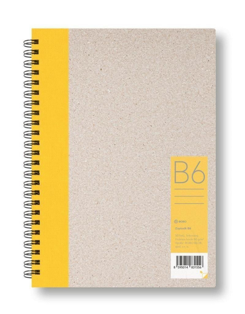 Kroužkový zápisník B6, linka, žlutý, 50 listů