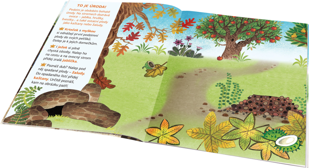 Kdo by neznal krtka – nejroztomilejšího kresleného pohádkového hrdinu na světě? Vydejte se spolu s ním objevovat kouzlo ročních období na krásných obrázcích geniálního výtvarníka Zdeňka Milera! Dvoustránkové scenerie mohou děti dolepovat spoustou roztomilých samolepek, ať už podle zadání, anebo podle vlastní fantazie. V knížce se kromě toho dozvědí mnoho nového a zajímavého o podzimu a za pomoci samolepek si také mohou vyzdobit vlastní obrázek, pokojíček nebo vyrobit pexeso!