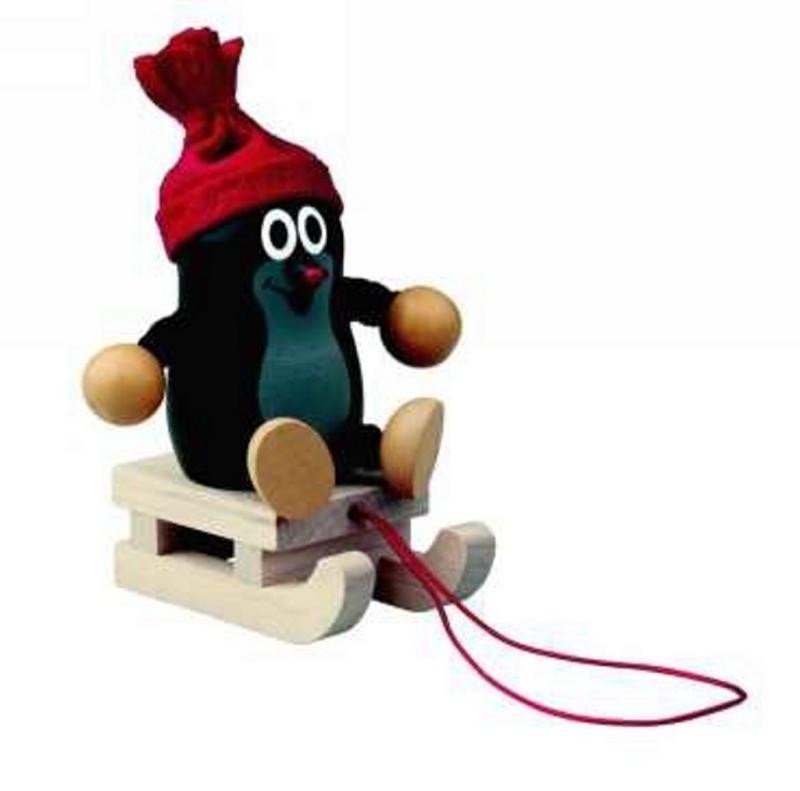 Tahací krtek na sáňkách, figurku je možné ze sáněk sundat.