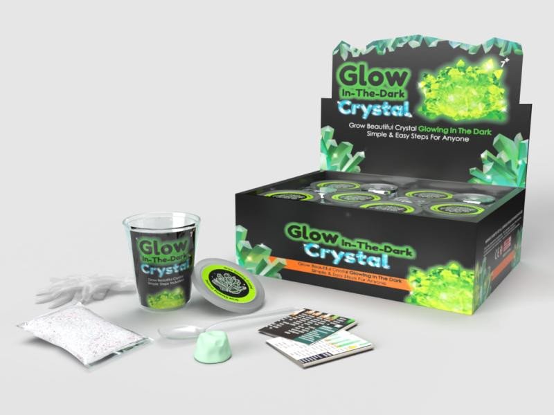 Rostoucí krystal - Svítící ve tmě. Obsah balení: 60 g krystalového prášku 1 základní kámen 1 míchací lžíce 1 návod Věk: 6+