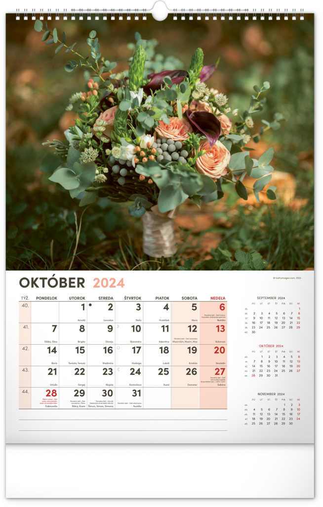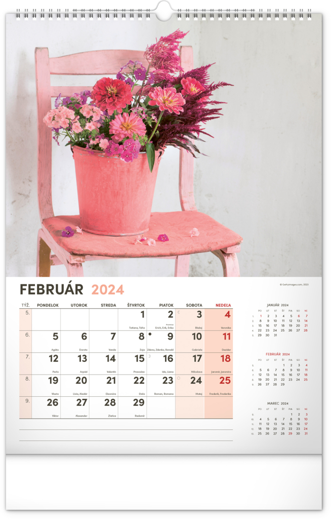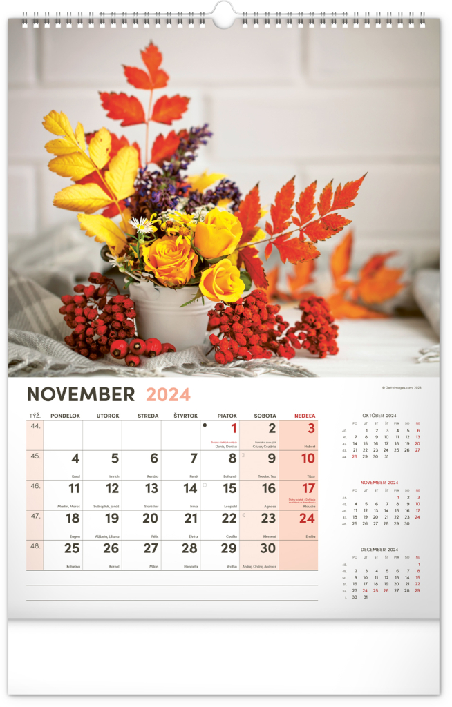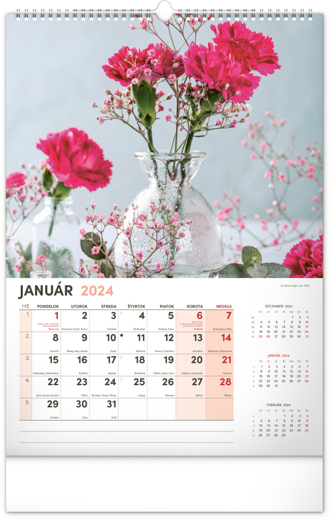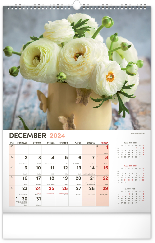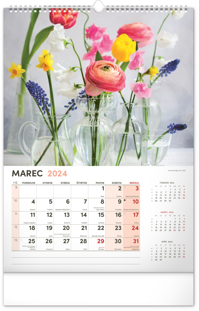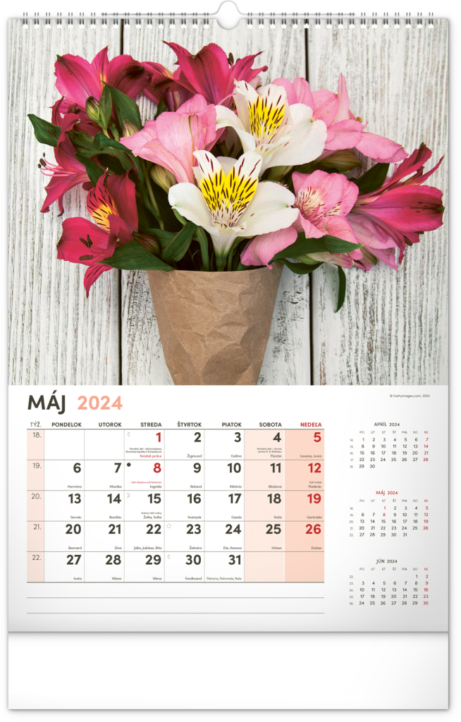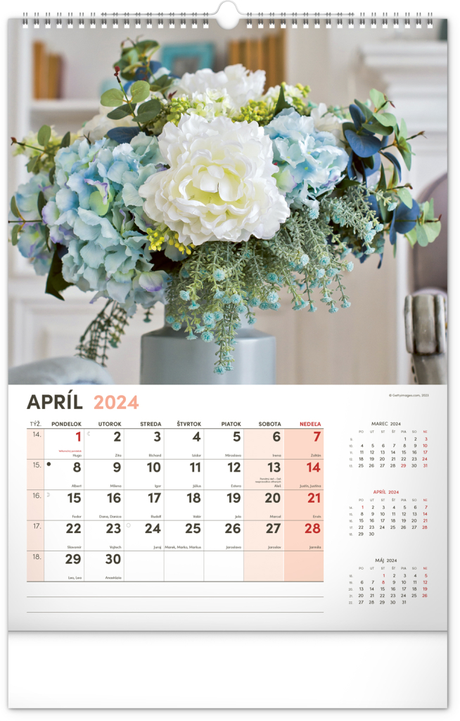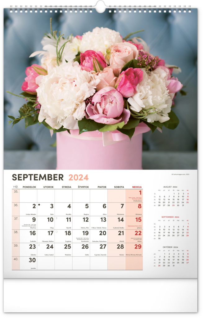 Nástenný kalendár Kvety 2024, 33 × 46 cm