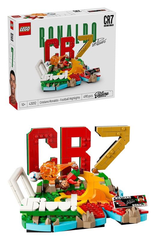 Děti se ponoří do fotbalové akce při skládání sběratelského výstavního modelu, který oslavuje Cristiana Ronalda. Základnu modelu tvoří iniciály a barvy národního týmu hráče, Portugalska, a velký nápis CR7, což je jeho slavná přezdívka. Minifigurka Cristiana Ronalda stavebnici vdechuje život. Nechybí sběratelská cedulka se statistikami a podpisem fotbalisty, stejně jako celá řada odkazů na jeho život a kariéru. Jakmile jsou fanoušci se stavěním hotoví, můžou svůj cool fotbalový model hrdě vystavit.