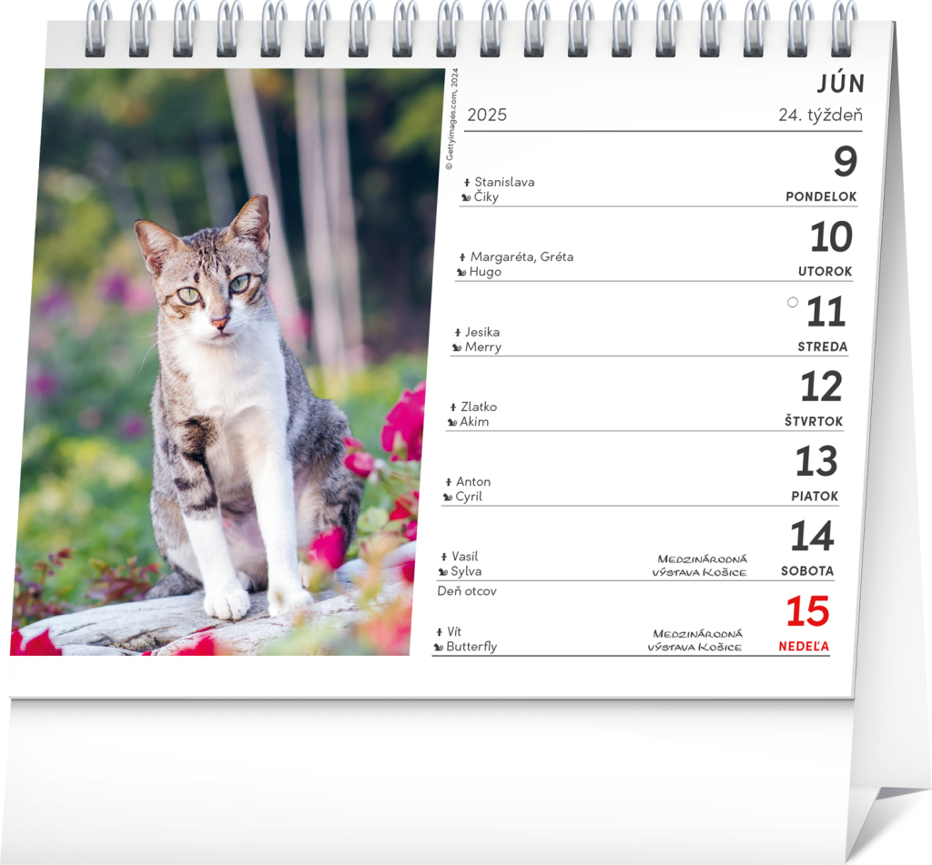 NOTIQUE Stolový kalendár Mačky – s menami mačiek 2025, 16,5 x 13 cm