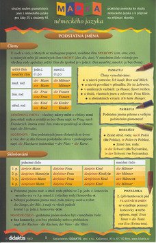 8 přehledně zpracovaných stran předkládá nejdůležitější poznatky z mluvnice německého jazyka (nechybí ani nejdůležitější pravopisná pravidla a upozornění na jevy, ve kterých se nejvíce chybuje).