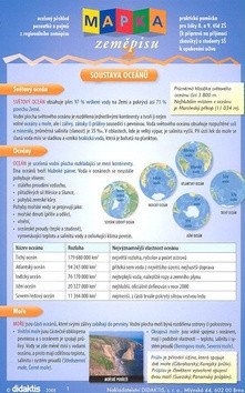 8 stran přehledně zachycuje důležité poznatky a pojmy z regionální geografie (oceány, kontinenty, Evropská unie, Česká republika). Celý text je doplněn poutavým barevným obrazovým materiálem.