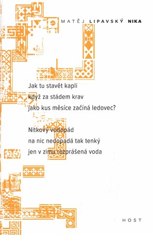 Autor (nar. 1985) vystudoval AVU v Praze (ateliér J. Sopka), je spoluautorem výtvarné části komiksové novely CHYBA (volně dle románu M. Šindelky). Své básně publikoval např. v Souvislostech, Listech či Přítomnosti. Je také zastoupen v antologii Nejlepší české básně 2015. Lipavský, jak se dá očekávat u tvůrce s dvojdomým záběrem, je nadán citem pro velké scenerie i drobná, jen letmo zahlédnutá zátiší: „Tys viděla sekvoj já velrybu / a nestalo se nic / obvyklý pocit cílových prázdných míst / kulky zarostlé v kůře borovic / na straně od moře.“ Nika je prostor, který ohraničuje prázdno, je to však prázdno k naději a sdílení. Nika je prvotina mocného zraku.