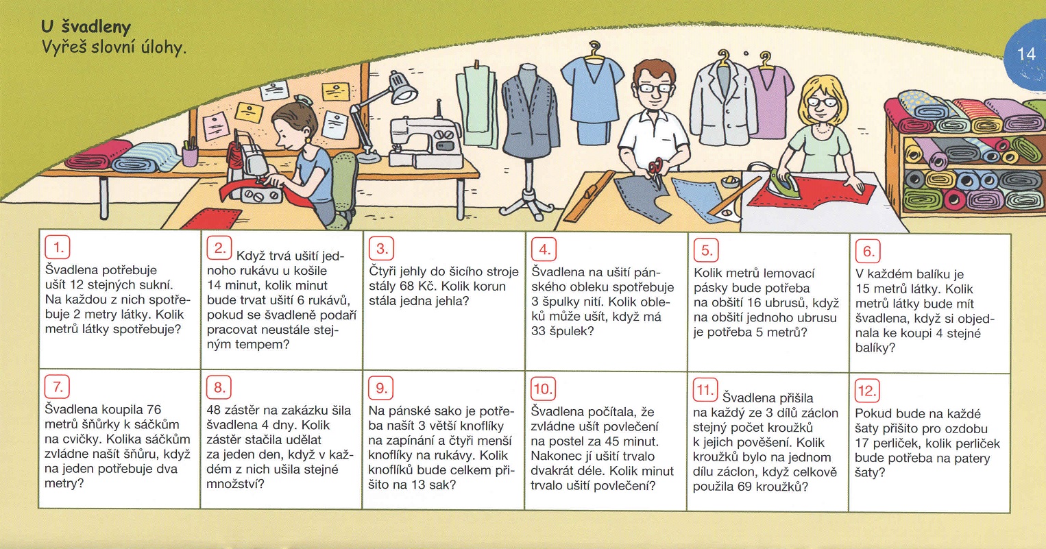U švadleny – jednoduché slovní úlohy, násobení a dělení mimo obor malé násobilky