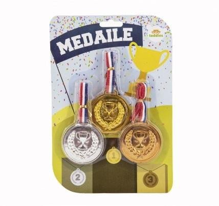 Medaile pro všechny malé vítěze. Sada tří medailí se stužkou. Děti mohou soutěžit v různých disciplínách s nadějí, že se postaví na stupně vítězů a budou odměněni medailemi. Zajistěte dětem medaile do soutěží! Vhodné pro děti od 3 let.