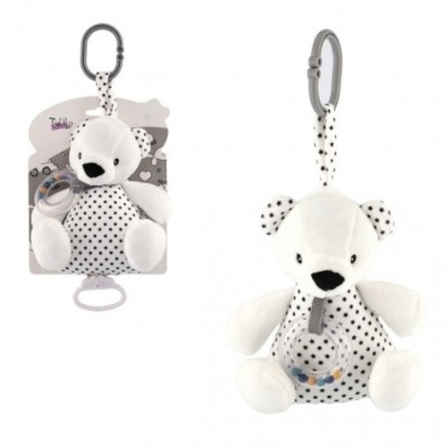 Natahovací plyšový medvídek hraje příjemnou melodii, která miminko uklidní a pomáhá mu při usínání. Medvídek má u krku chrastítko a lze jej zavěsit za pomocí klipu. Hrací strojek je zabudovaný uvnitř medvídka.
