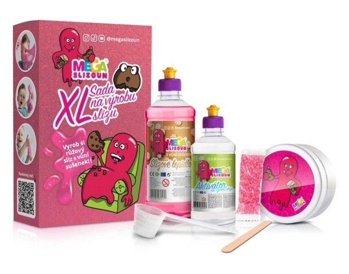 pMEGASLIZOUN – sada na výrobu slizu XL, růžová S touto sadou vyrobíte 750 ml růžového slizu s vůní sušenek. BEZ MIKROPLASTŮ!/pp bSada obsahuje:/ br500 ml růžového lepidla s vůní sušenekbr250 ml aktivátorubr2,5 g růžových minerálních třpytekbrodměrku a špachtličku misku s uzávěrem pro ukládání slizubrdáreček od Megaslizouna (překvapení)brnádherný dárkový box/ppProč je hraní se slizem skvělé a u dětí je potřeba ho podporovat? Výroba slizu podporuje dětskou fantazii a kreativitu. Hraní se slizem má blahodárné účinky a podporuje rozvoj jemné motoriky a smyslového vnímání./p