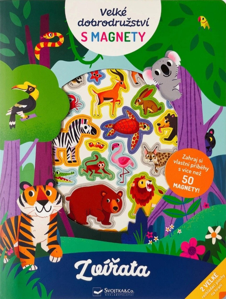 Zahraj si v této rozkládací knize vlastní příběhy se zvířaty - nyní ve větším formátu! Po roztažení měří kniha 300 x 920 mm a nabízí dvě velké scény k doplnění více než 50 barevnými magnety. Děti se dozvědí zajímavé informace o zvířatech v jejich přirozeném prostředí a zároveň si při hře s magnety rozvíjejí představivost, jemnou motoriku i slovní zásobu.