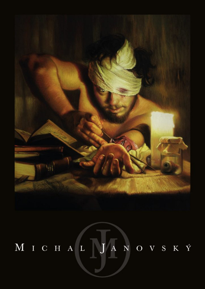 „Žije a tvoří v 21. století a tak si témata vybírá i současná, jen je umí na plátně dobře promíchat s minulostí. Často je sám sobě modelem. Má rád velké formáty, kde si může umělecky pohrát s každou drobností a dát jí důležitou, často i zásadní roli. Libuje si ve skrytých symbolech a mystických světelných nuancích. Kdo ale osobně Michala Janovského pozná, brzy zjistí, že je to mistr černého humoru a parodie. V námětech se nebojí (a doslova ani neštítí) ničeho. Je schopen naprosto bravurně zpracovat i tak kontroverzní téma, jako jsou exkrementy. Janovský si libuje v provokaci a s úsměvem je schopen parodovat a zesměšnit veškeré lidské vlastnosti a manýry.