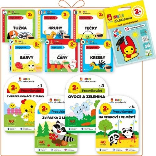 MINI akademie je ucelený moderní systém učení, který sestavili odborníci na předškolní vzdělávání. Skládá se ze tří učebních balíčků pro 3 věkové skupiny: pro dvouleté, tříleté a čtyřleté děti. Hlavním rysem je srozumitelný obsah, který vede dítě od prvních pokusů kresby až po nezávislé řešení různých aktivit. Všechny tři úrovně se skládají z šesti knih s aktivitami a čtyř pracovních sešitů se samolepkami. Knihy s aktivitami seznamují děti s novými činnostmi a pracovní sešity pomáhají upevňovat znalosti.