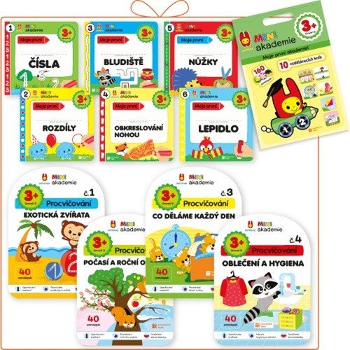 MINI akademie je ucelený moderní systém učení, který sestavili odborníci na předškolní vzdělávání. Skládá se ze tří učebních balíčků pro 3 věkové skupiny: pro dvouleté, tříleté a čtyřleté děti. Hlavním rysem je srozumitelný obsah, který vede dítě od prvních pokusů kresby až po nezávislé řešení různých aktivit. Všechny tři úrovně se skládají z šesti knih s aktivitami a čtyř pracovních sešitů se samolepkami. Knihy s aktivitami seznamují děti s novými činnostmi a pracovní sešity pomáhají upevňovat znalosti.
