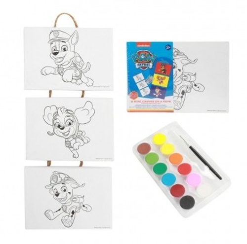 Mini plátno na provázku 3ks Tlapková patrola se štětcem a barvami ve fólii