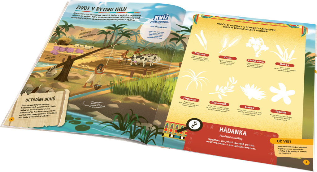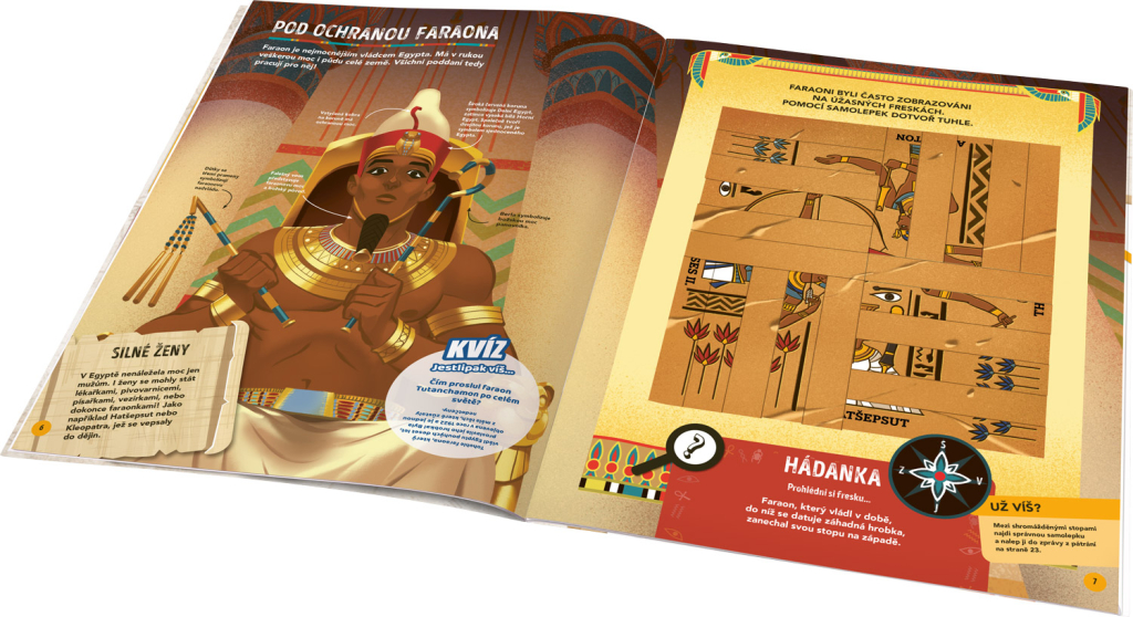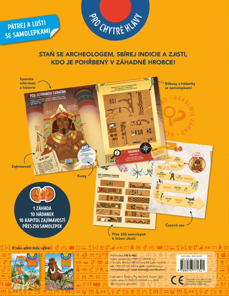 Vydejte se na dobrodružnou misi s krycím názvem EGYPT! Akademie záhad, jež řeší hádanky staré stovky, tisíce, ba miliony let, má pro vás zapeklitý případ. Tamní vědci objevili papyrus, na němž je zaznamenáno místo, kde se má nacházet hrobka. Tvrdí se o ní, že je prokletá… Pokračujte v archeologickém šetření, sbírejte indicie, najděte záhadnou hrobku a zjistěte, kdo je v ní pochován. Jen pokud se dokážete úspěšně popasovat se všemi rébusy, kvízy a úkoly, přijdete tomu na kloub! Máte na to přes 150 samolepek, a navíc spoustu poutavých informací a zajímavostí z historie.
