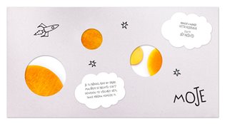 Interaktivní fotografická knížka, kterou může každé dítě proměnit ve vlastní umělecké dílo. Její velkoformátové fotografické listy na pevném papíře a bílá místa k dokreslení nabízejí široký prostor pro nekonečnou dětskou fantazii, drobné básničky na odlepovacích obláčcích pomáhají při inspiraci. Vlastnoručně dotvořený list je možné vyjmout a třeba někomu věnovat. A jak jinak potom takové knížce říkat než MOJE!
