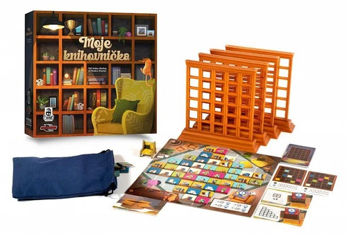 Obsah balení: 4 knihovničky, 132 dílků s předměty, 1 herní plán, 24 karet, 1 křesílko prvního hráče, 9 bodovacích žetonů 1 látkový sáček, 4 stojánky na karty, česká a slovenská pravidla.