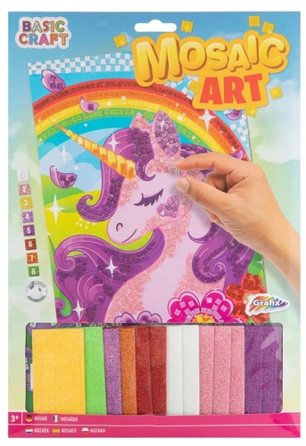 Balení obsahující mozaiku pestrých barev s glitrem potěší všechny kreativní děti. Lepením čtverečků podle čísel do obrázku se děti hezky zabaví a zároveň si procvičí čísla a zlepší jemnou motoriku.