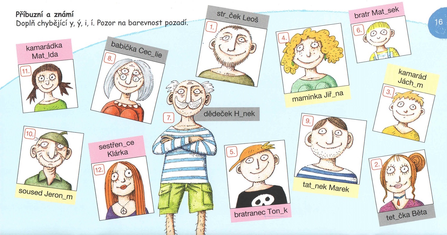 Příbuzní a známí – pravopis po tvrdých a měkkých souhláskách