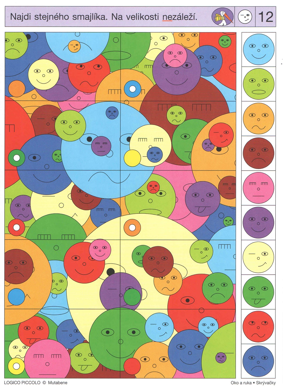 Celkově procvičuje účelný postup při hledání, který se podstatně liší od postupu při jiných činnostech. Hledané objekty se skrývají ve množství podobných jednotlivých objektů nebo splývají se svým okolím či pozadím.