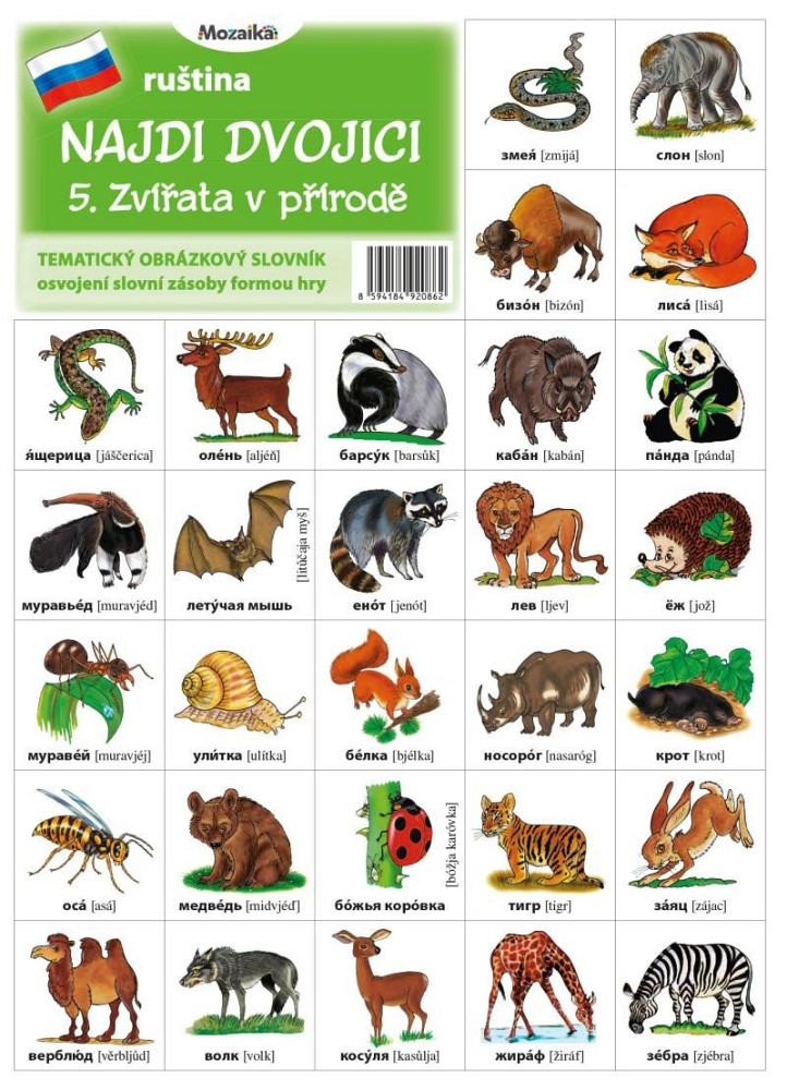 Najdi dvojici - Ruština - 5. Zvířata v přírodě