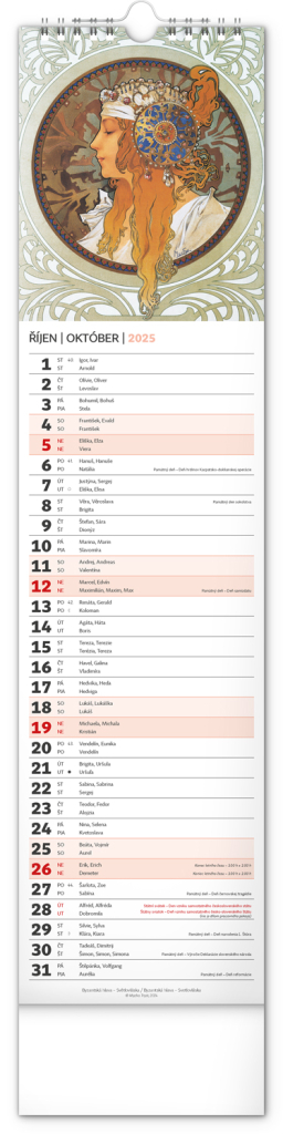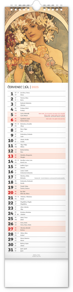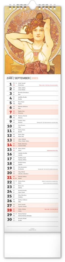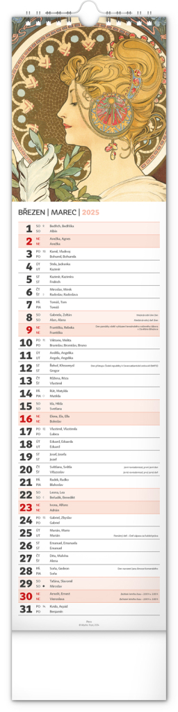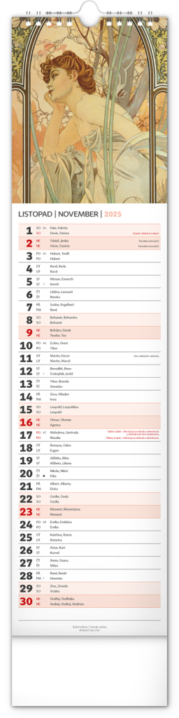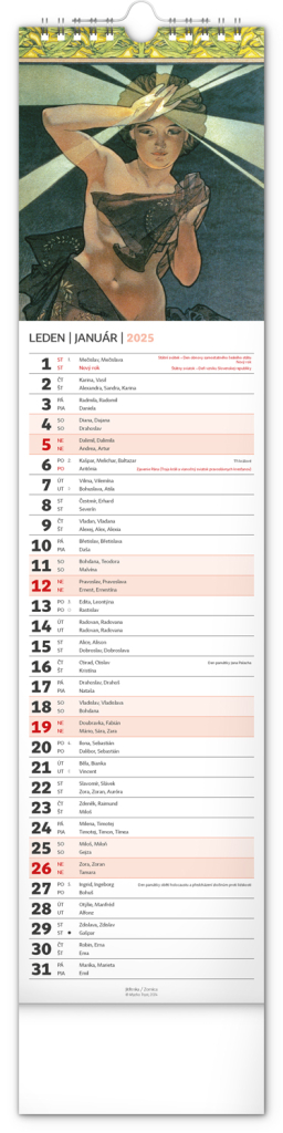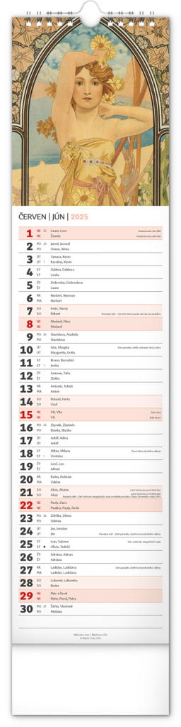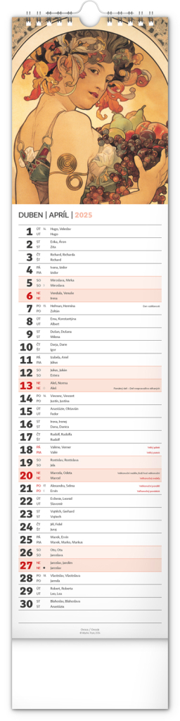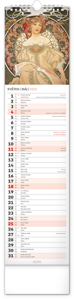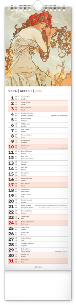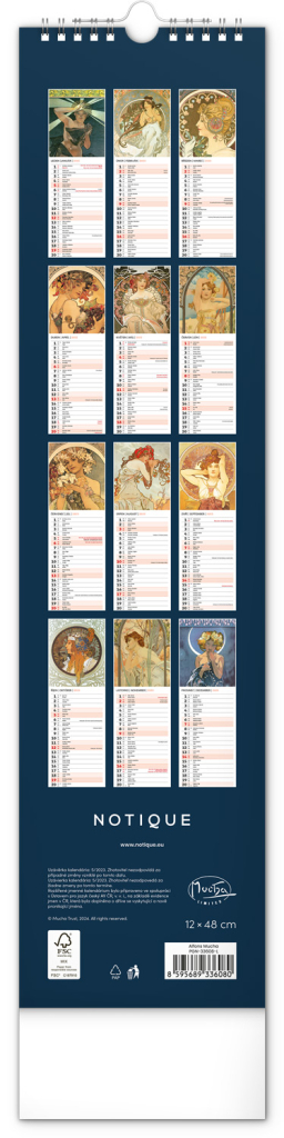 NOTIQUE Nástěnný kalendář Alfons Mucha 2025, 12 x 48 cm