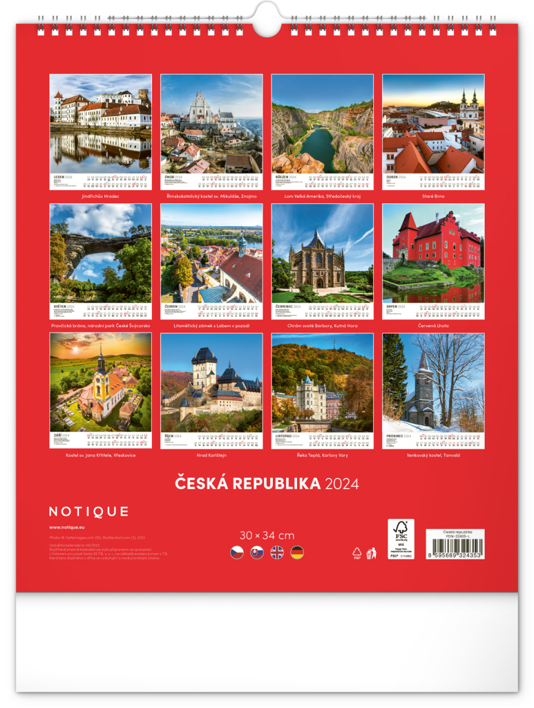 Nástěnný kalendář Česká republika 2024, 30 × 34 cm