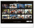 Kalendář pro milovníky žen a silných strojů. Na stránkách nástěnného kalendáře v šířkovém formátu pózuje dvanáct krásných žen s nablýskanými motocykly . Obsahuje univerzální kalendárium.
