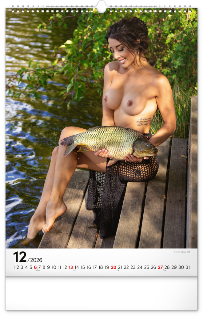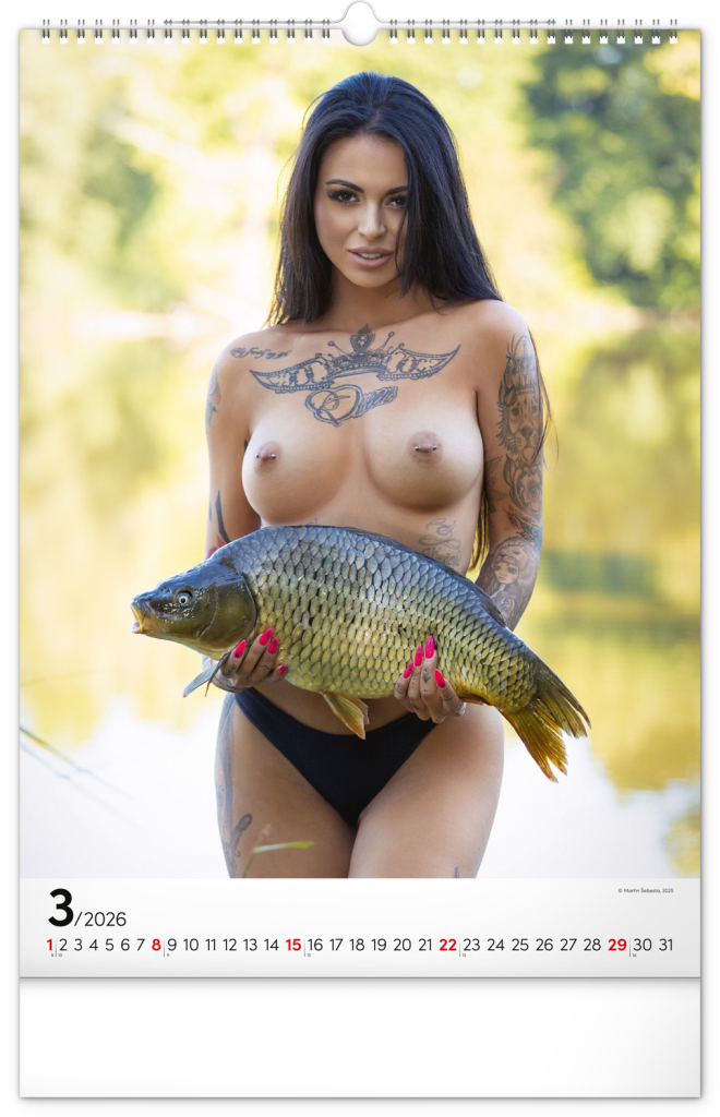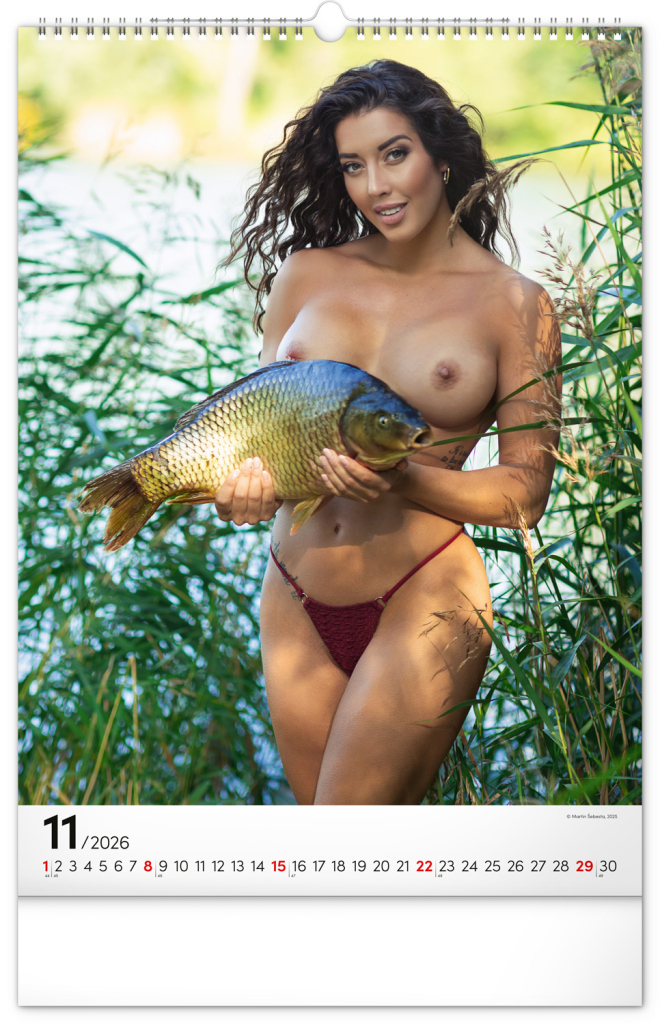 Nečekané spojení trofejních ryb a ženské krásy na stránkách nástěnného kalendáře s univerzálním kalendáriem pro všechny skutečně vášnivé rybáře.