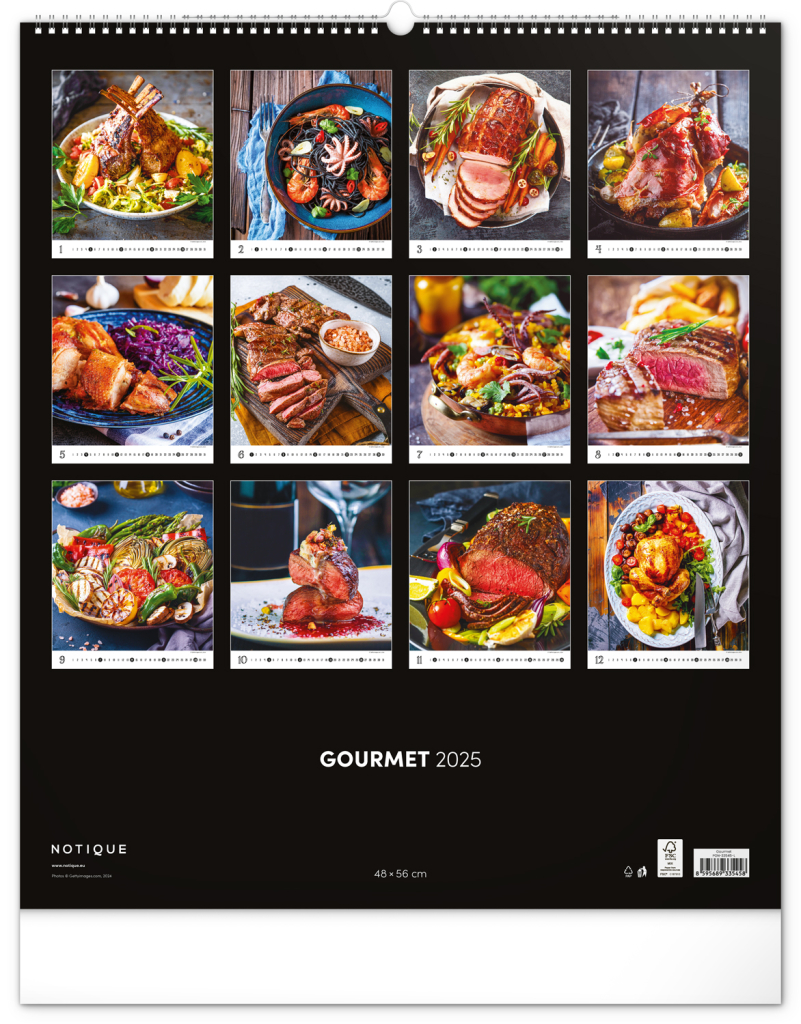NOTIQUE Nástěnný kalendář Gourmet 2025, 48 x 56 cm