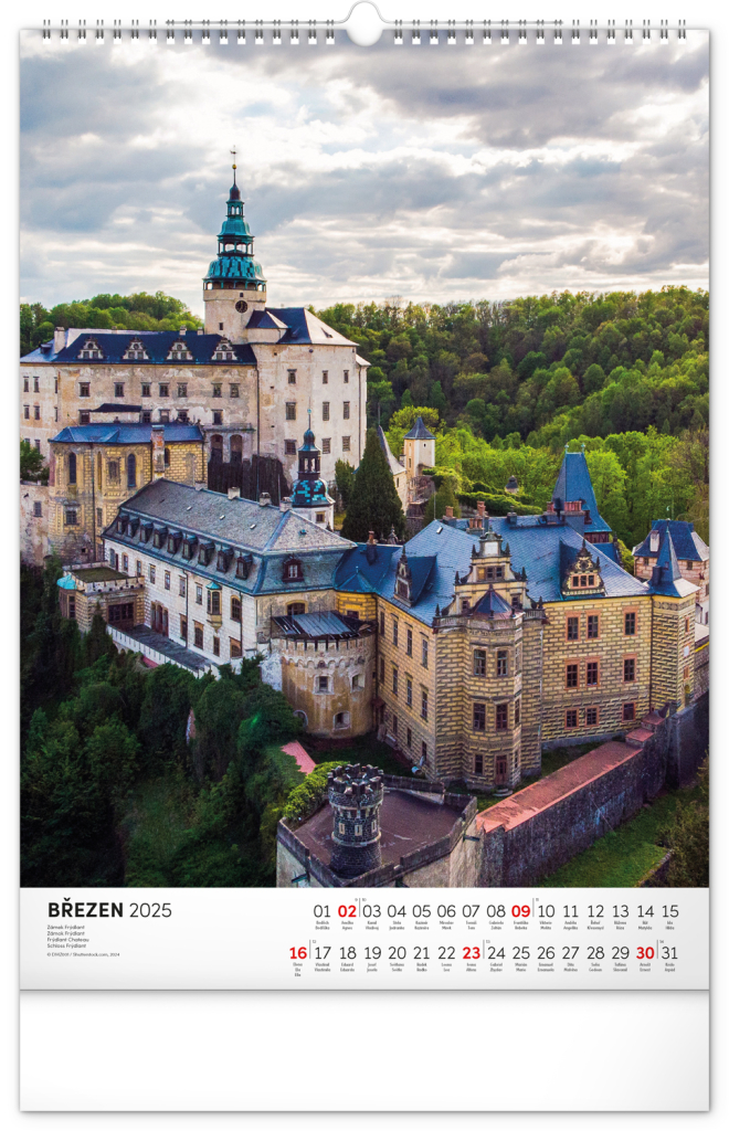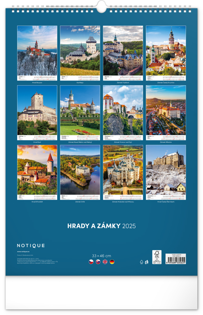 NOTIQUE Nástěnný kalendář Hrady a zámky 2025, 33 x 46 cm