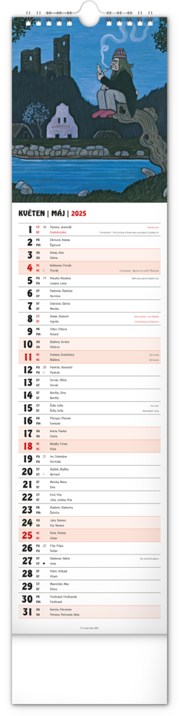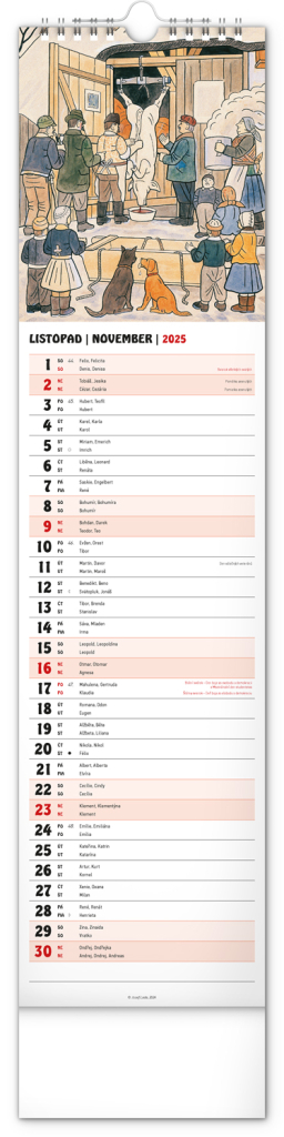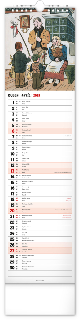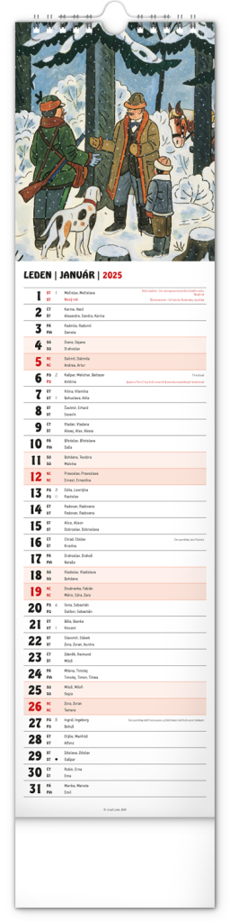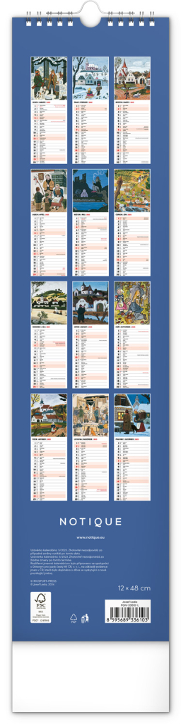 NOTIQUE Nástěnný kalendář Josef Lada 2025, 12 x 48 cm
