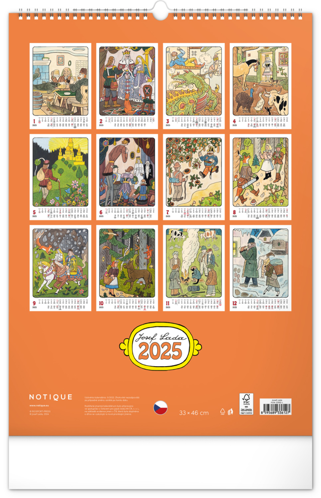 NOTIQUE Nástěnný kalendář Josef Lada 2025, 33 x 46 cm