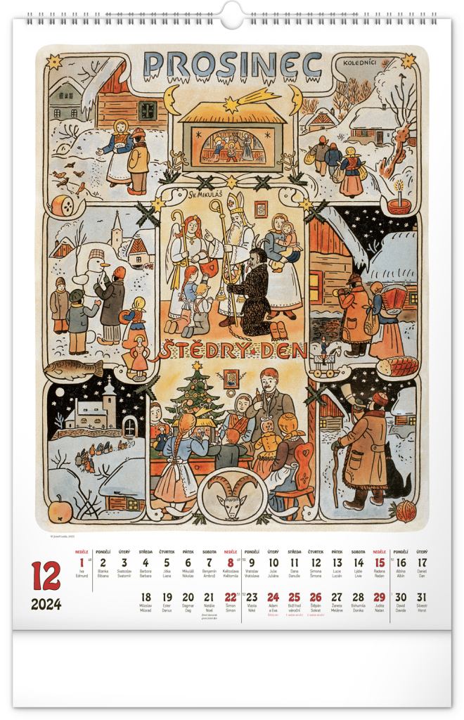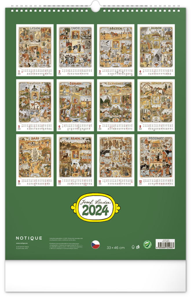 Nástěnný kalendář Josef Lada – Měsíce 2024, 33 × 46 cm