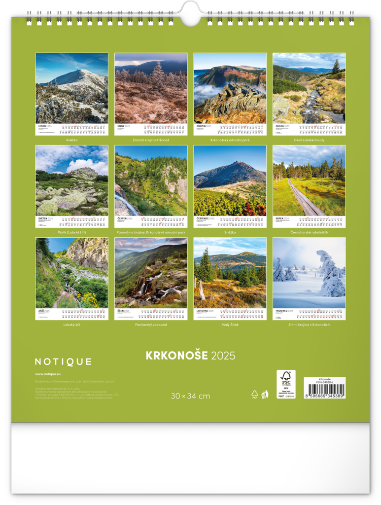 NOTIQUE Nástěnný kalendář Krkonoše 2025, 30 x 34 cm